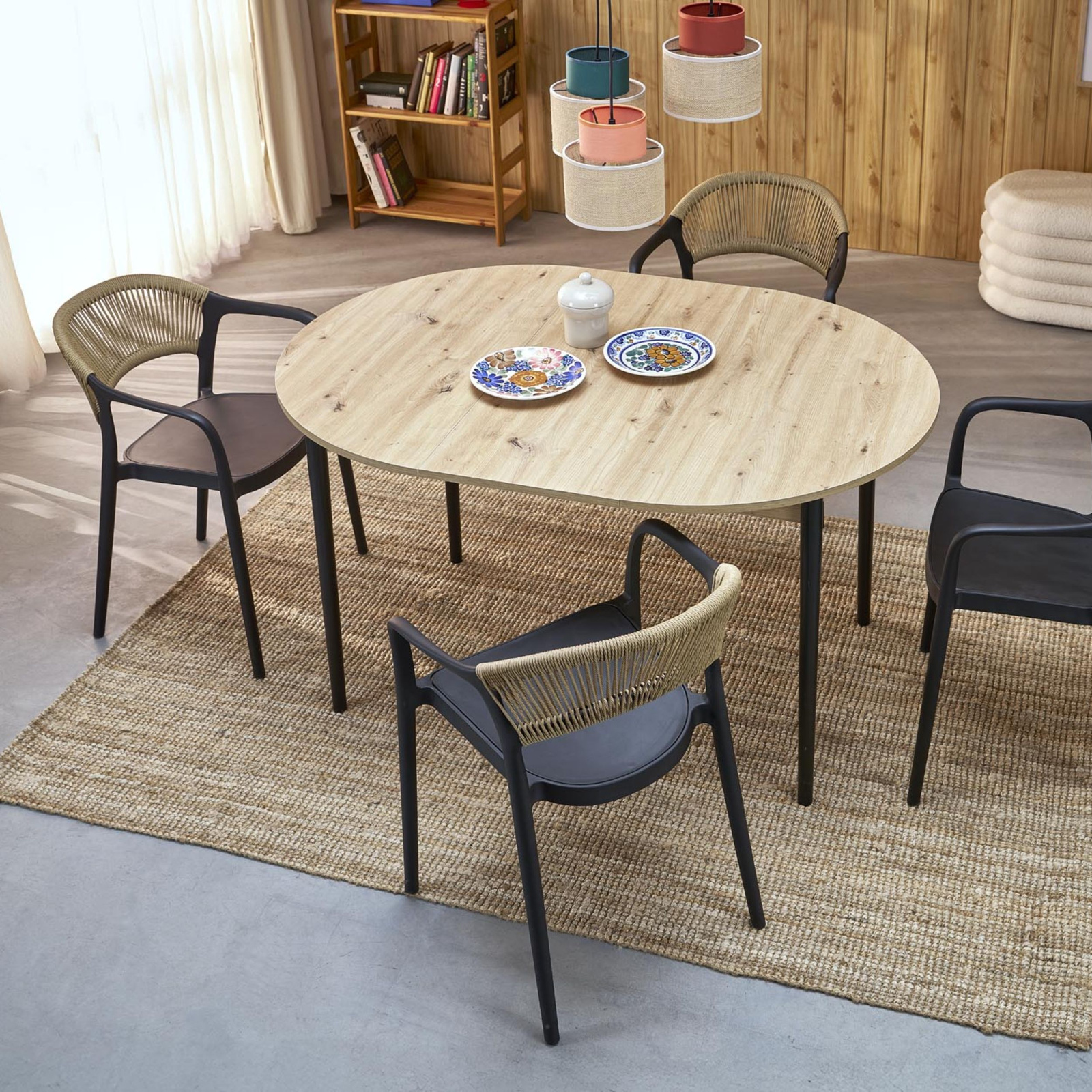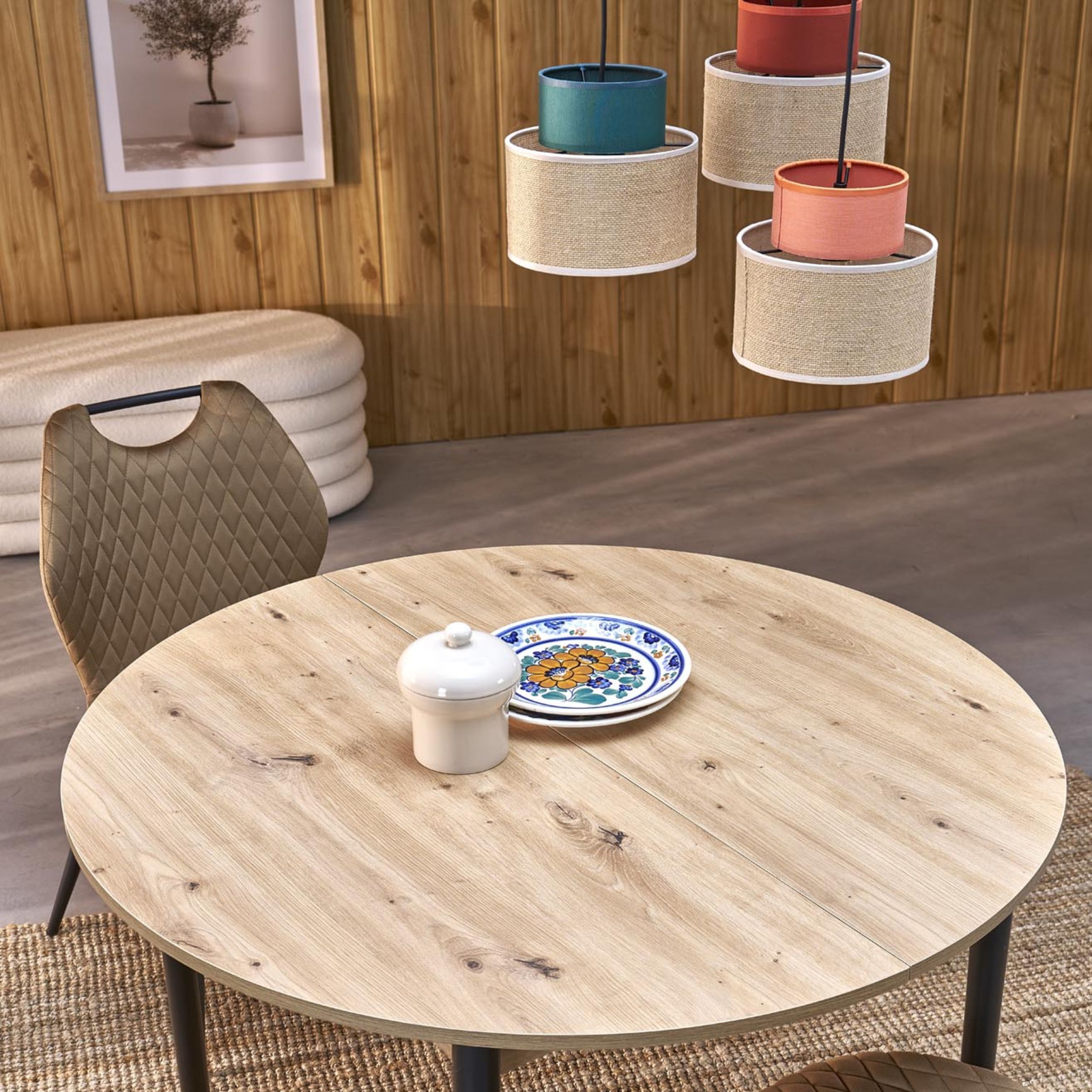 Rodzina lamp Duo to wyjątkowe lampy wiszące abażurowe, które zapewnią niepowtarzalny i stylowy wygląd Twojemu wnętrzu. Ich charakterystyczną cechą jest kolorowy element abażura w odcieniach bieli, zieleni, pomarańczu oraz brązu, który został połączony z naturalną jutą. Kolorowy abażur stanowi efektowny akcent, który podkreśla nowoczesny design lampy, dodając jej przyjemnego, przytulnego charakteru. Odcienie zieleni wprowadzą do Twojego wnętrza odrobinę świeżości i harmonii, natomiast pomarańcz i brąz dodadzą ciepła i przytulnego, rustykalnego klimatu. Materiałem, który został wykorzystany do stworzenia abażurów, jest naturalna juta. Dzięki temu lampy Duo są nie tylko piękne, ale też ekologiczne i przyjazne dla środowiska. Juta jest naturalnym włóknem roślinnym i doskonale komponuje się z innymi materiałami, nadając im naturalny urok i niepowtarzalny charakter. Rodzina lamp Duo doskonale sprawdzi się w różnych pomieszczeniach, takich jak salon, sypialnia czy jadalnia. Ich subtelne światło stworzy przyjemną i relaksującą atmosferę, a kolorowe abażury dodadzą oryginalności i wyrazistości całemu otoczeniu.