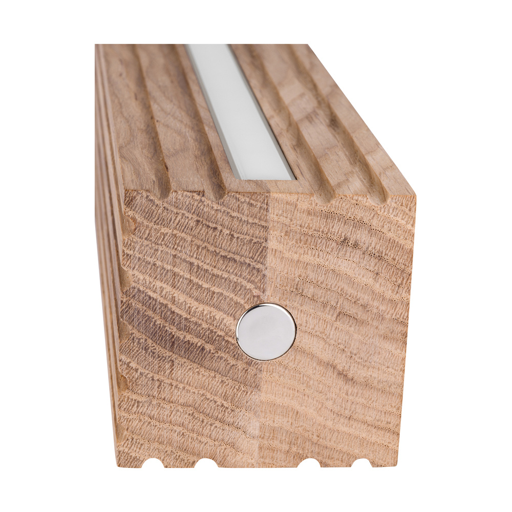 Kinkiet Riflet stanowi doskonałe uzupełnienie nowoczesnych wnętrz, łącząc w sobie naturalne piękno olejowanego dębu z nowoczesnym profilem aluminiowym. Dwa źródła światła LED o mocy 12W zapewniają efektywne, ale subtelne oświetlenie, które idealnie sprawdzi się w sypialniach, korytarzach czy salonach. Wbudowany dotykowy ściemniacz umożliwia łatwą regulację jasności, co zwiększa uniwersalność kinkietu i pozwala stworzyć idealną atmosferę w każdym pomieszczeniu. Nowoczesny design i funkcjonalność czynią kinkiet Riflet eleganckim i praktycznym rozwiązaniem do współczesnych wnętrz.