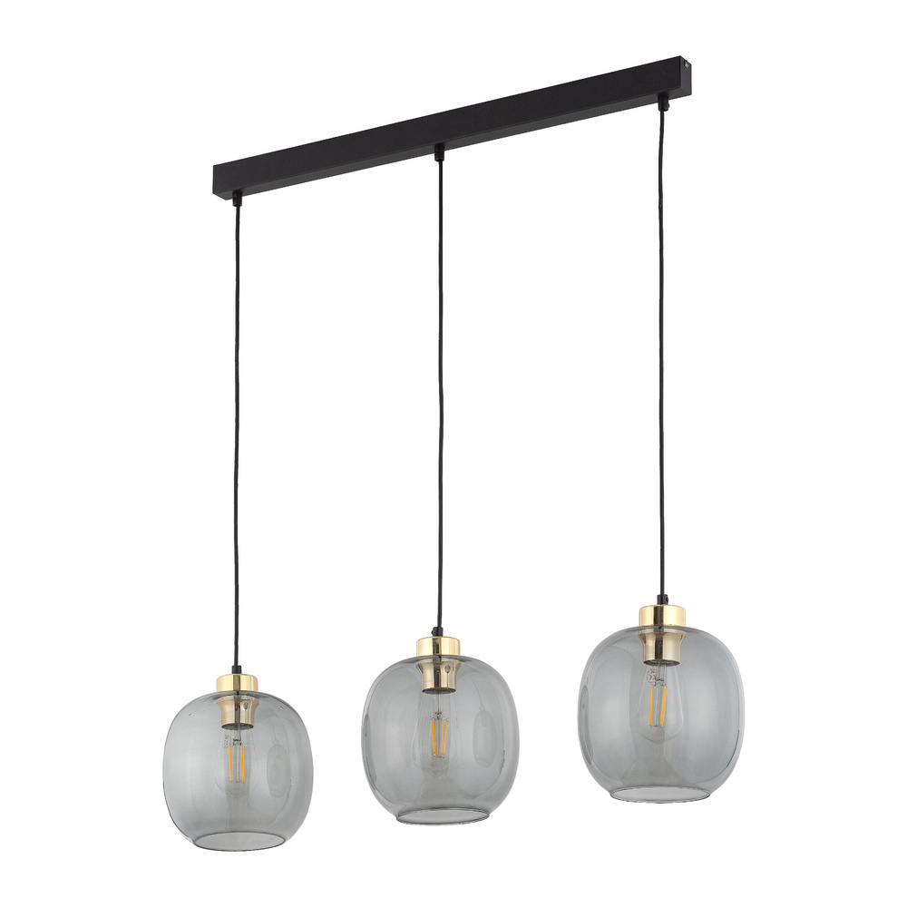 OMEGA – to seria lamp wiszących, które pomimo swojego minimalizmu pozwalają sobie na bycie swoistą dekoracją wnętrza. Dymiony szary kolor klosza zestawiony ze złotą podkloszówką ciekawie łączy się z metalowymi elementami podsufitki. Model lampy wiszącej sprawdzi się jako osobne źródło światła w sypialni, gabinecie czy nad stolikiem w kawiarni, zaś w grupie kilku lamp doskonale odnajdzie się jako oświetlenie salonu oraz jadalni.