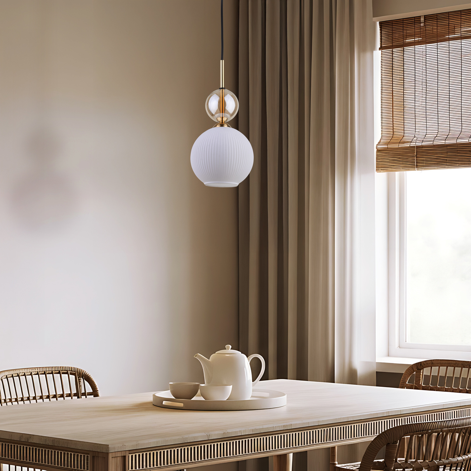 Rodzina lamp Sophia Cognac to połączenie klasycznej formy z nowoczesnym charakterem. Charakterystyczne klosze z delikatnym, pionowym ryflowaniem w ciepłym odcieniu, które subtelnie rozprasza światło, tworząc przytulny klimat w pomieszczeniu. Stylowe detale w kolorze złotym i elementy w tonacji przydymionego szkła dodają całości elegancji oraz szlachetności. Kolekcja obejmuje różne warianty – od pojedynczych zwisów, przez lampy sufitowe wielopunktowe, aż po kinkiety – dzięki czemu można harmonijnie oświetlić zarówno małe, jak i przestronne wnętrza. Sophia Cognac doskonale sprawdzi się w salonach, jadalniach, sypialniach, a także w aranżacjach komercyjnych, nadając im wyjątkowego charakteru.
