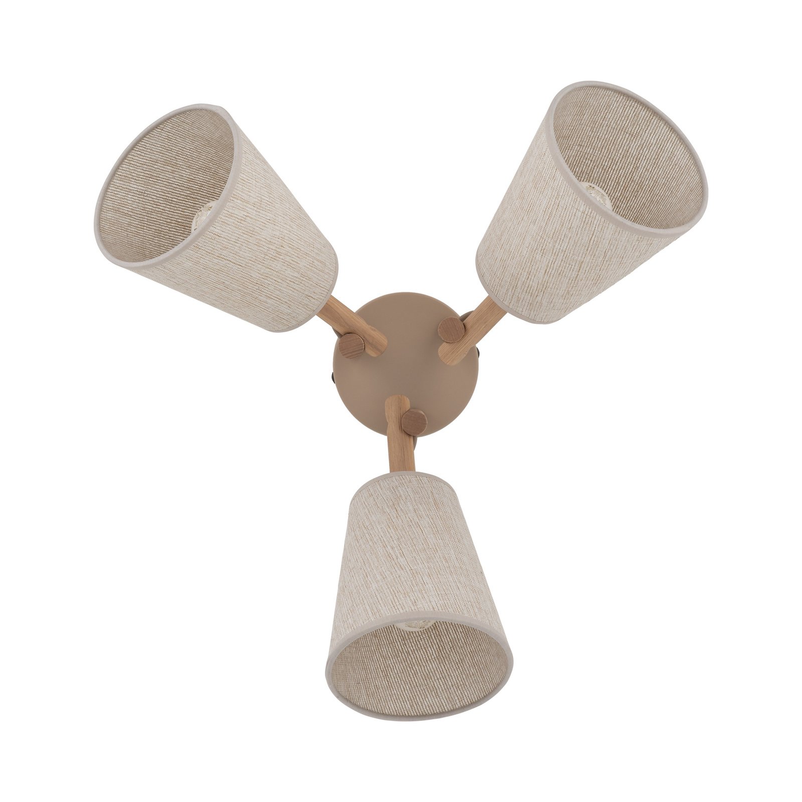 Kolekcja VAIO w kolorze sabia to idealne połączenie natury i elegancji. Lampy zachwycają ciepłym, przytulnym charakterem, który zawdzięczają połączeniu drewnianych ramion z lnianym abażurem w naturalnym odcieniu. Całość uzupełnia podsufitka w kolorze sabia, tworząc harmonijną i spójną kompozycję. Lampy VAIO występują w kilku wariantach – jako kinkiet oraz lampy sufitowe z trzema lub czterema źródłami światła, co pozwala dopasować je do różnych przestrzeni i potrzeb oświetleniowych. Ich lekka forma oraz użycie naturalnych materiałów sprawiają, że doskonale wpisują się w stylistykę boho, skandynawską i nowoczesną z nutą ciepła. To oświetlenie, które nie tylko rozjaśnia wnętrze, ale też wprowadza do niego spokój i przytulny nastrój.
